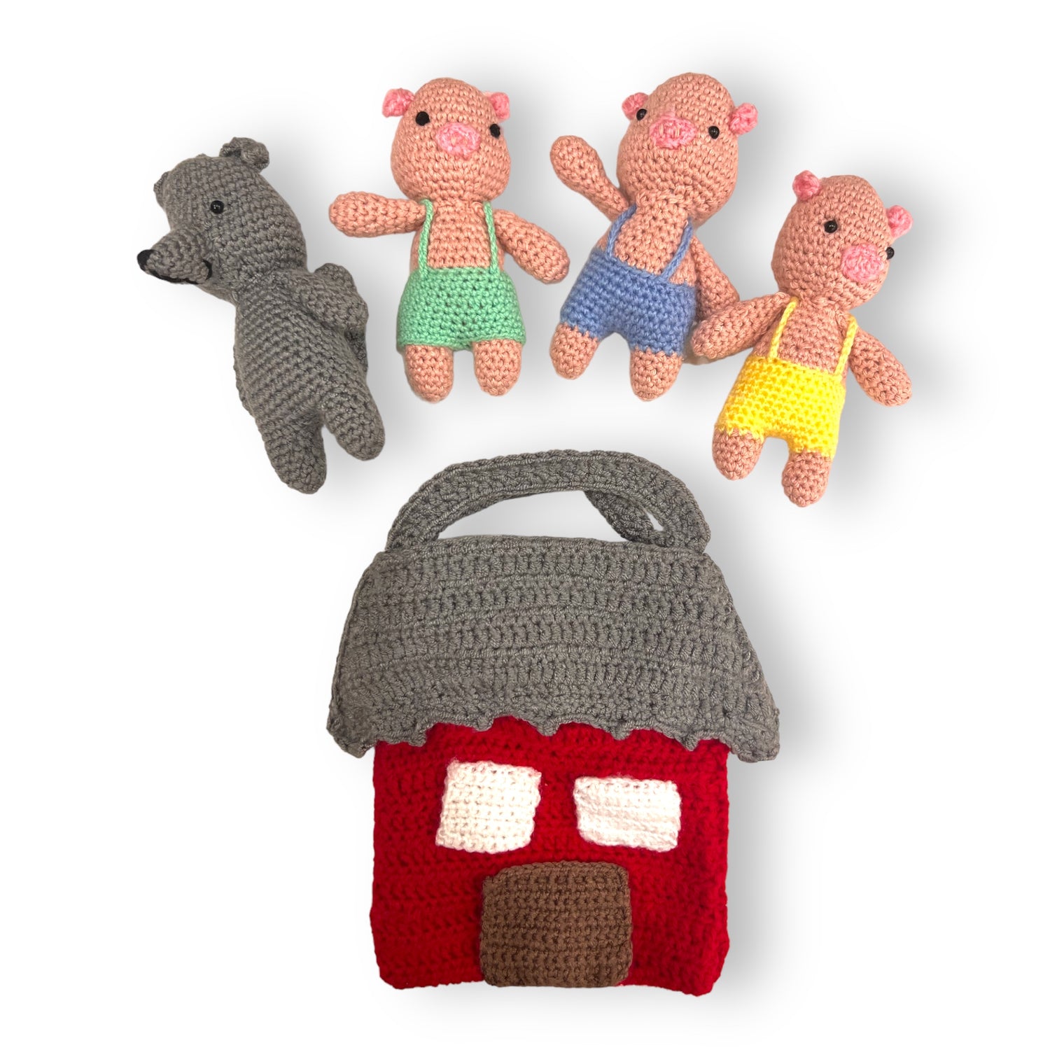 Enjoy this beautiful set that includes The Three Little Pigs Book and 5 crochet items including: